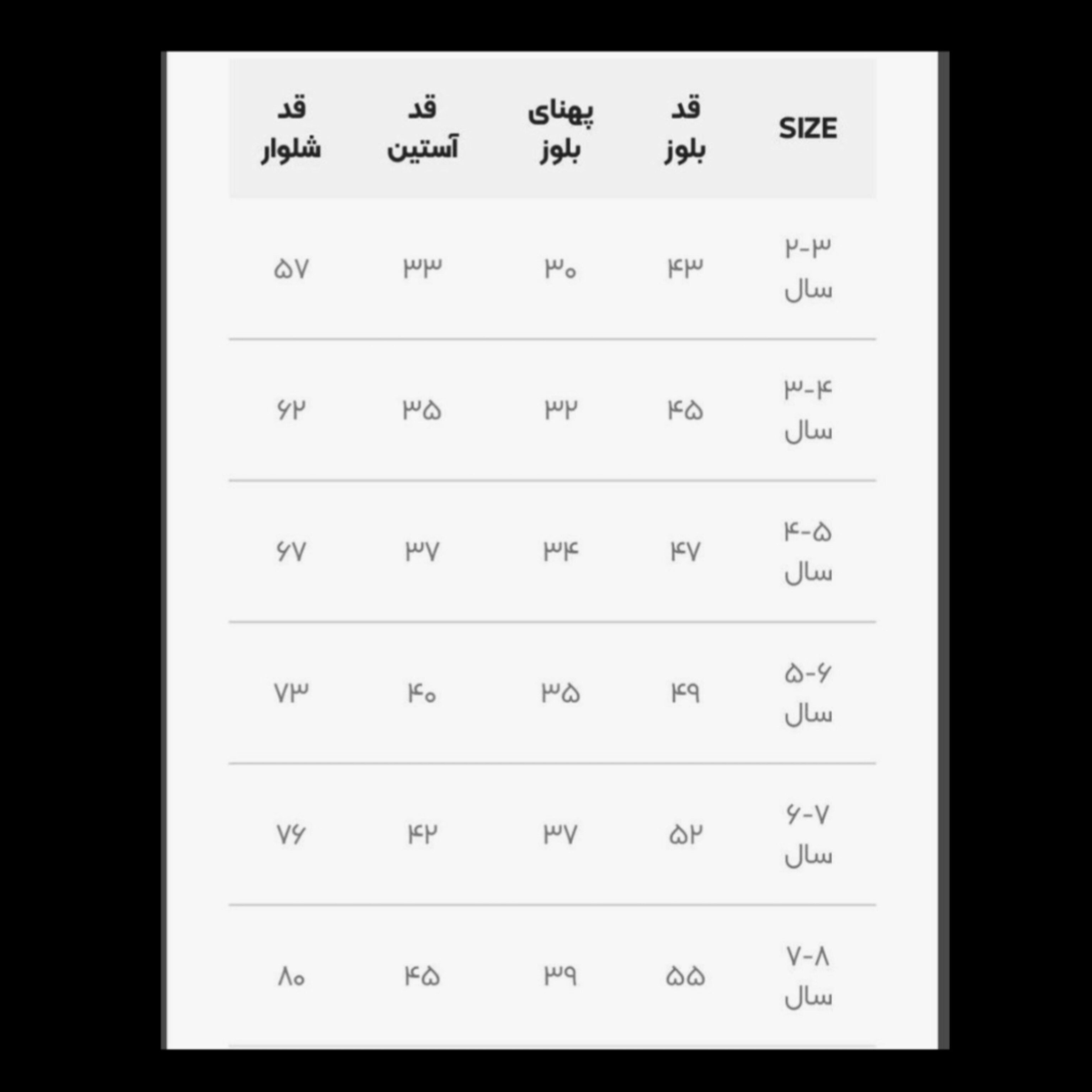 احتمال یک تا دو سانت خطای اندازه گیری وجود دارد. سایز مناسب برای هر سن حدودی است و قبل از خرید حتما اندازه ها را چک کنید.